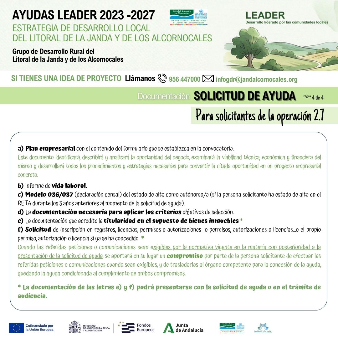DOCUMENTACIÓN A PRESENTAR EN FASE DE SOLICITUD DE AYUDA